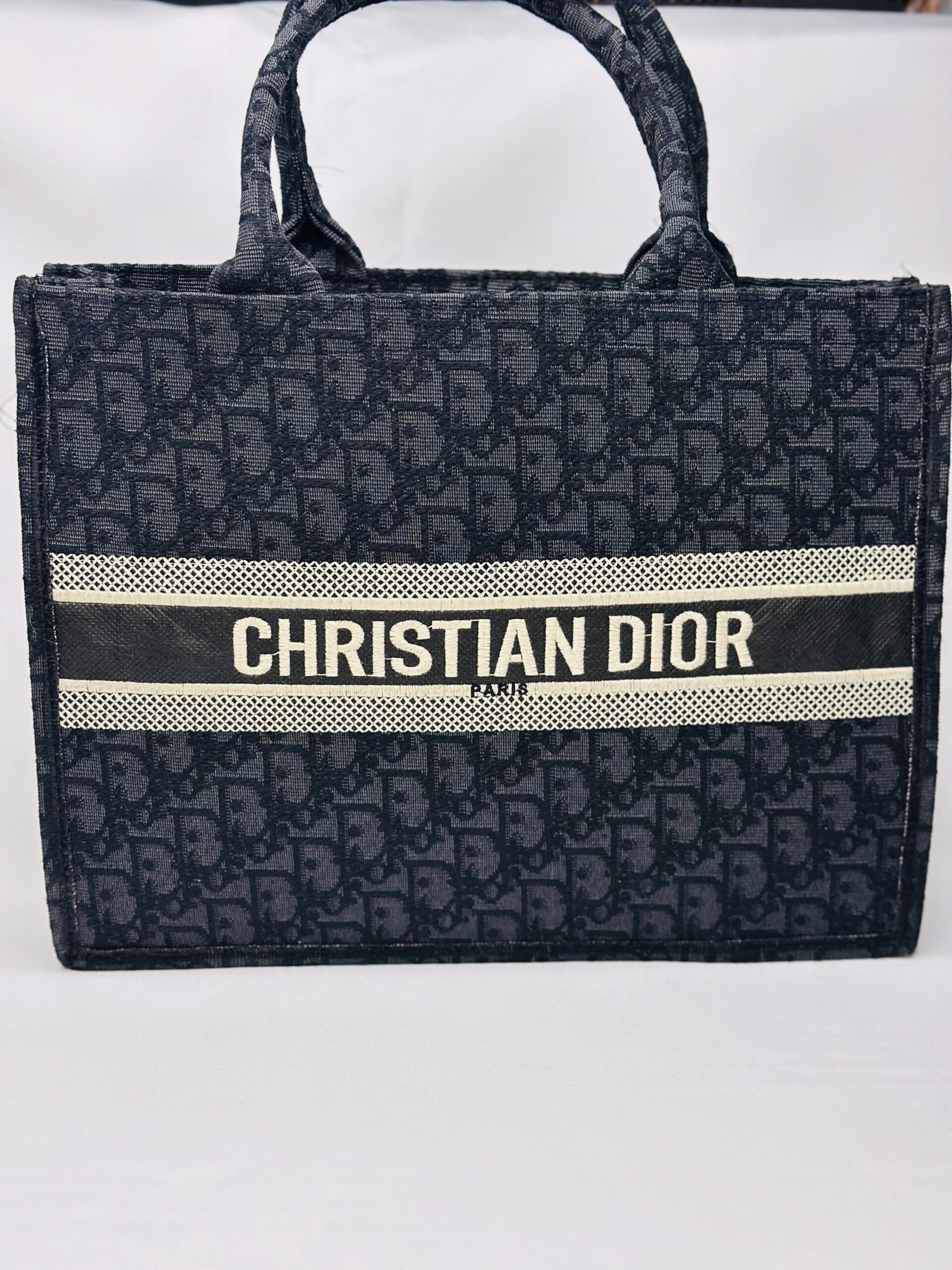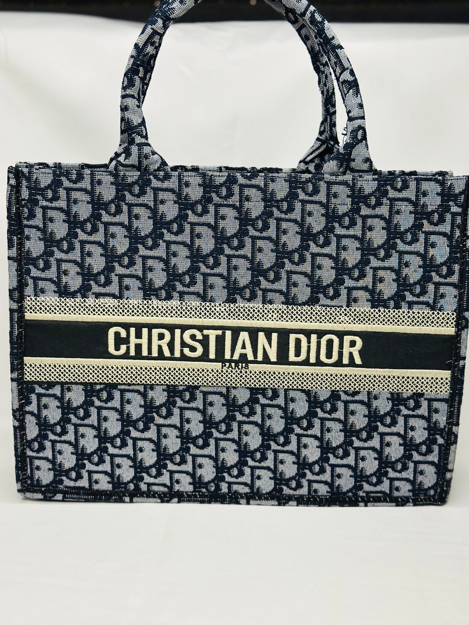 The Christian Dior Tote is a high-end accessory crafted with meticulous attention to detail, offering both elegance and functionality. It features a durable fabric with an intricate pattern, complemented by a bold branded stripe across the front. The bag provides ample storage space, making it perfect for carrying essentials for work, shopping, or casual outings. Its sturdy handles and well-constructed design ensure comfort and longevity, making it a versatile addition to any wardrobe.